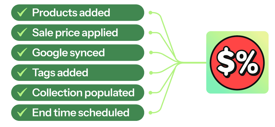 Choose from dollar off, percent off or new price. Apply it to full price items only, current sell price or RRP (compare-at-price).